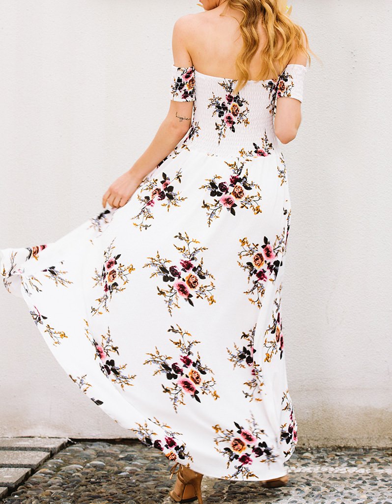White Floral Bliss Melody Off Shoulder Elasticated Bust Dress