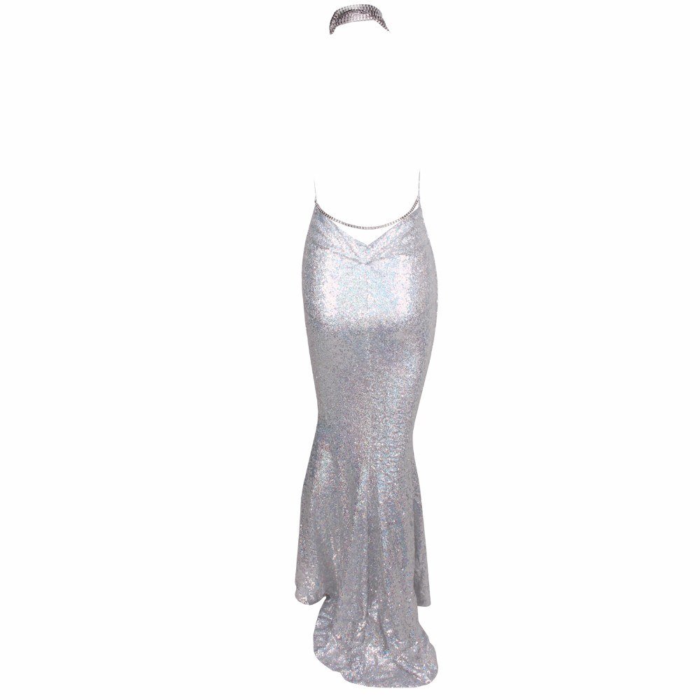 Silver Sequined Shine Cowl Neck Maxi Dress