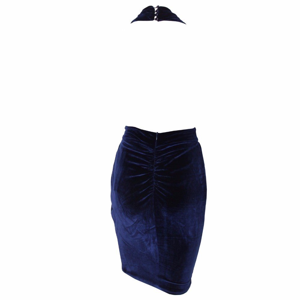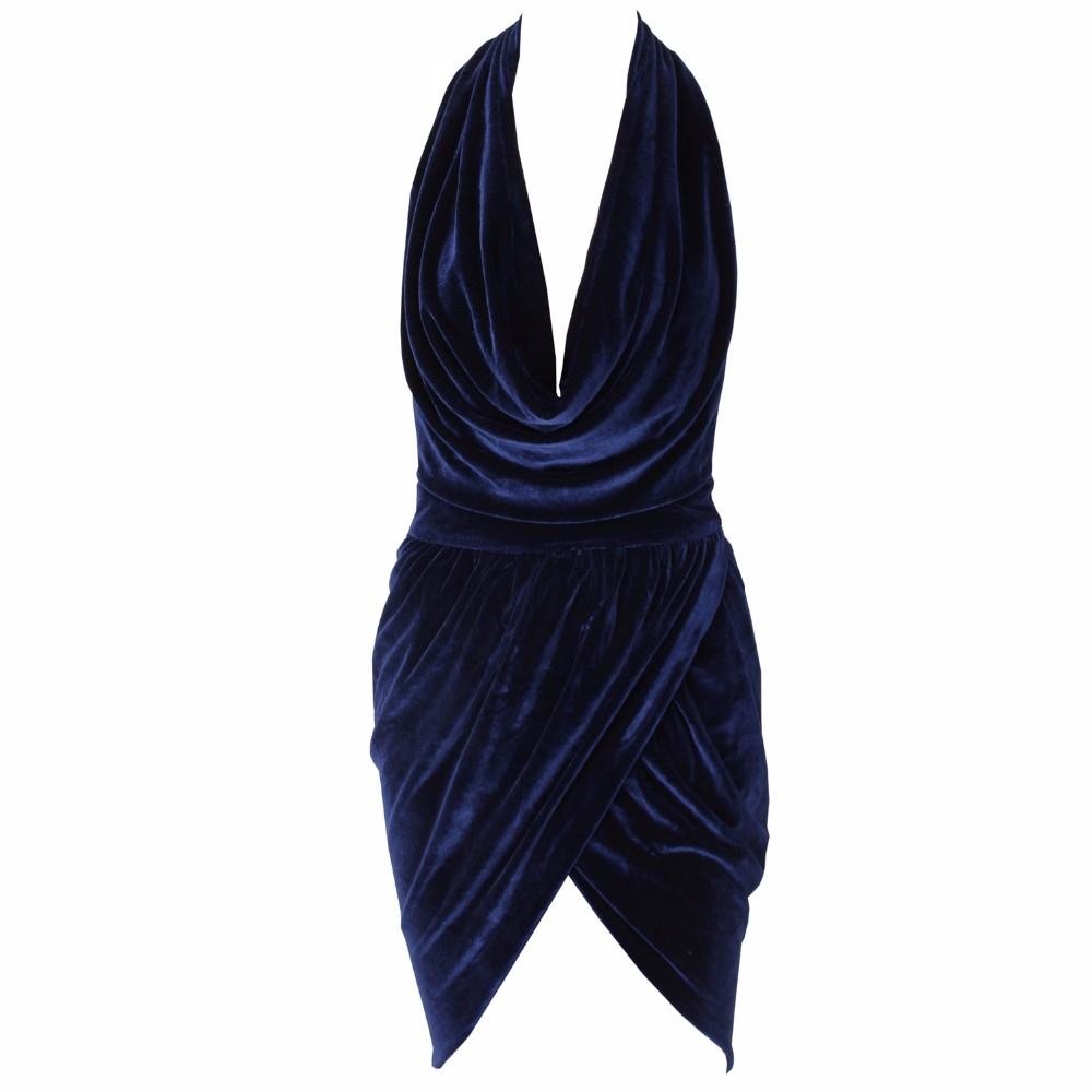Navy Velvet Sleeveless Cowl Neck Elegant Wrap Dress