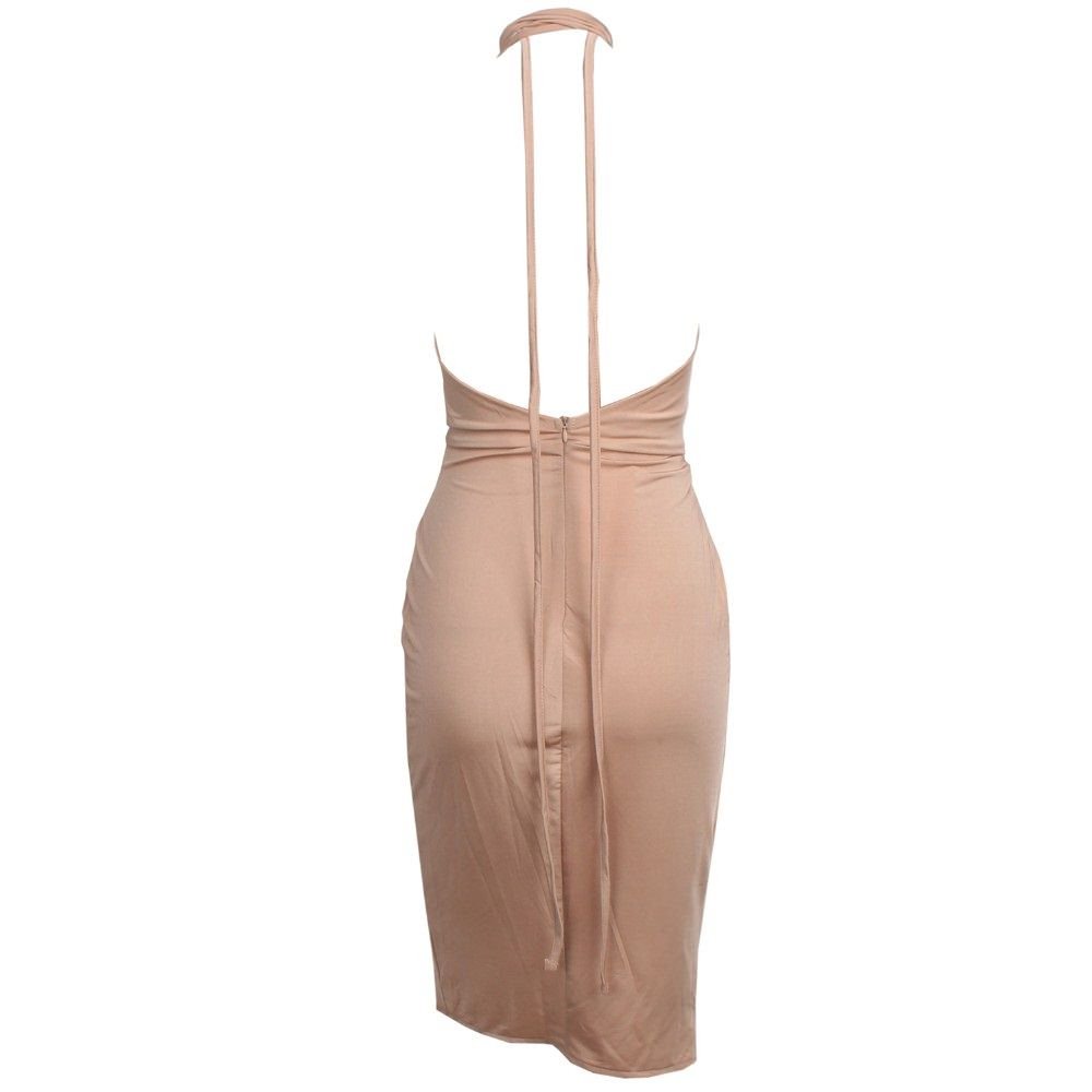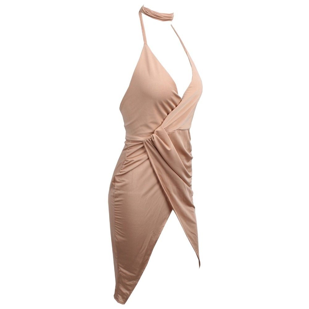 Nude V-Neck Cross Changeable Backless Wrap Drape Dress