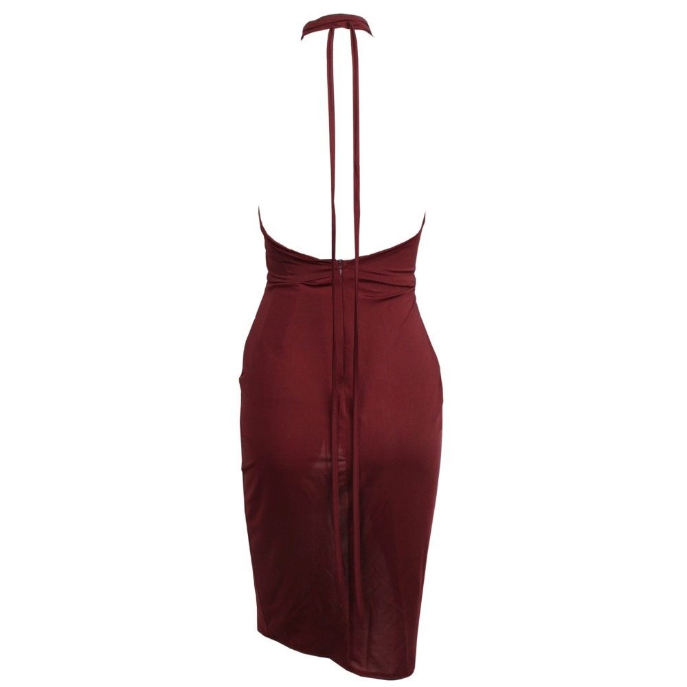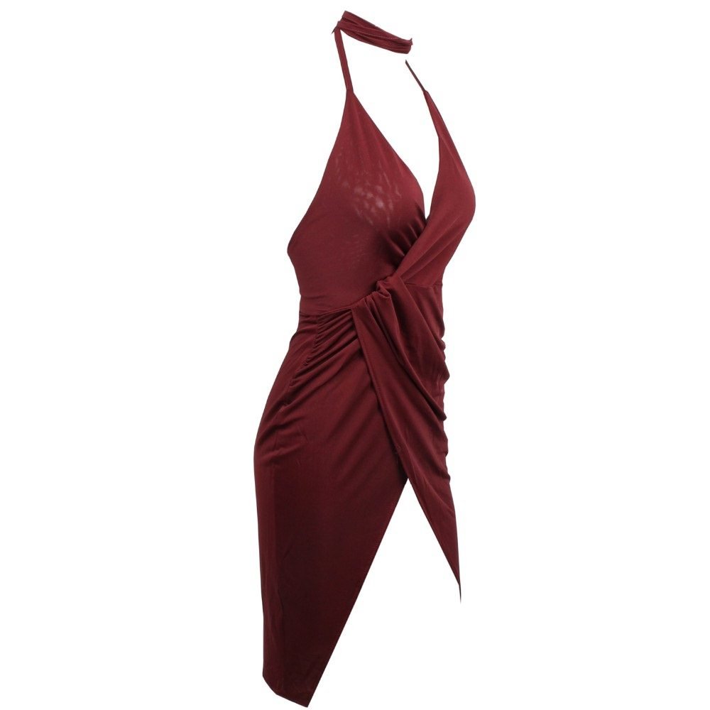 Burgendy V-Neck Cross Changeable Backless Wrap Drape Dress