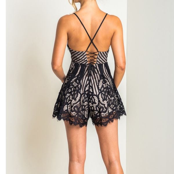 Black Romper Lace Sling V-neck Halter Straps
