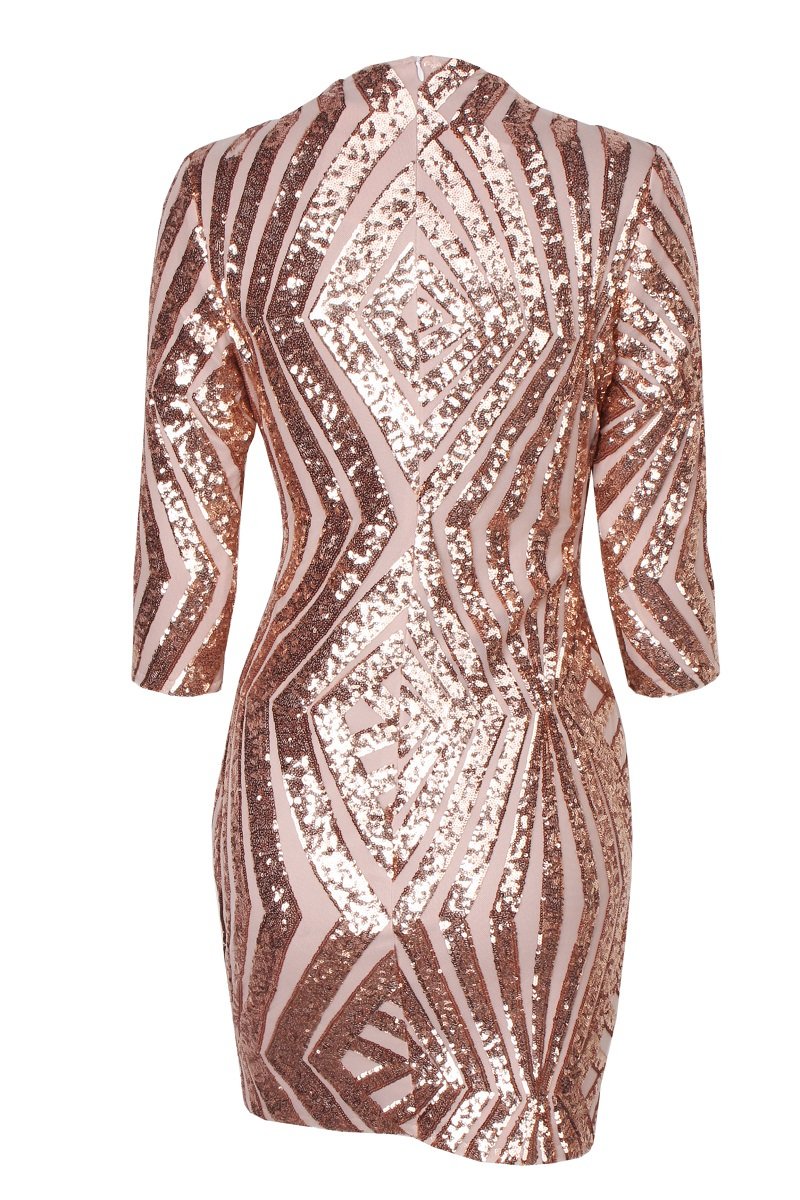 Gold Geometric Sequined and Mesh Bodycon Dress