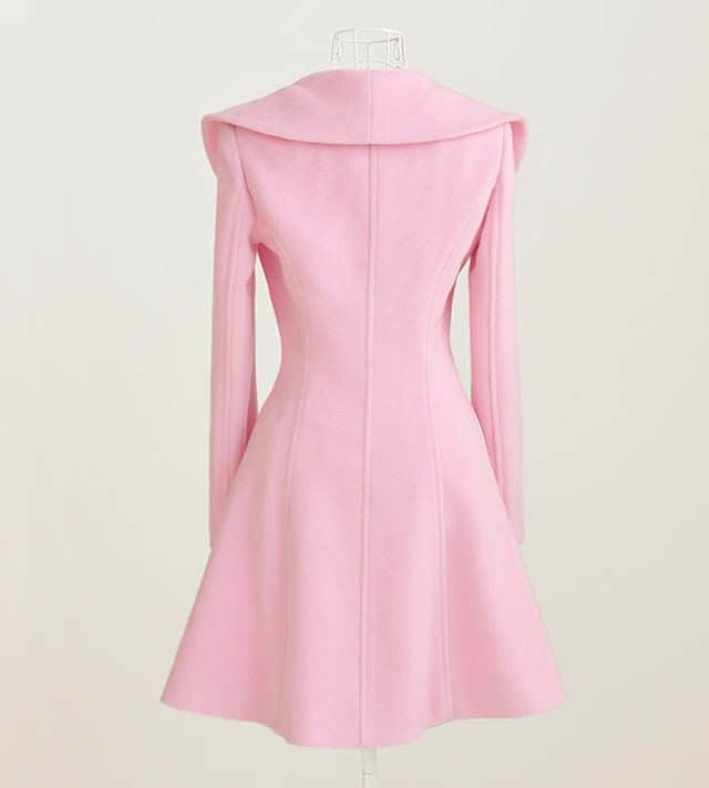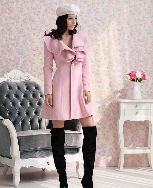 Slim Turn-down Ruffles Collar Wool Coats Pink